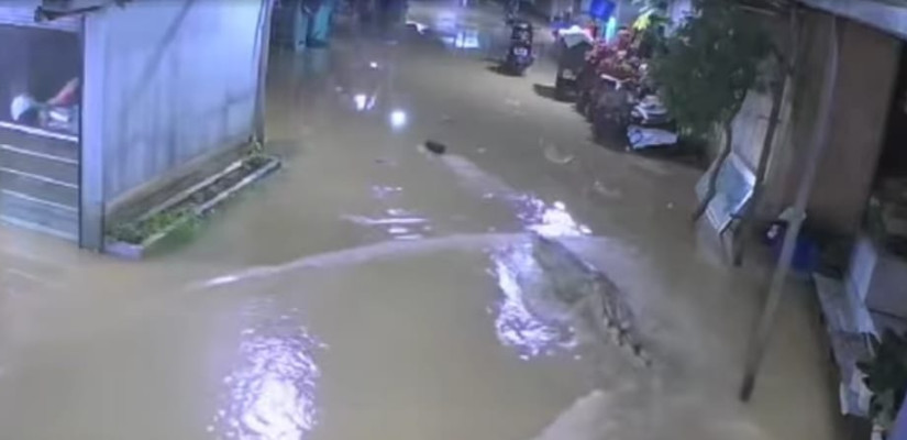 Di video lain yang diunggah akun Instagram @cerita_sangattaku, seekor buaya terlihat mondar-mandir di antara rumah warga sebelum kabur saat didekati. Kejadian ini memicu kepanikan, terutama di wilayah yang sering jadi langganan banjir dan rawan munculnya buaya.