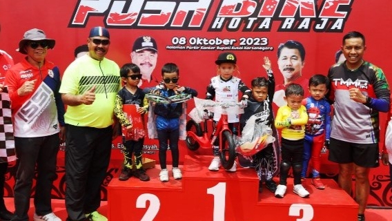 KUTAI KARTANEGARA – Bupati Kutai Kartanegara (Kukar) Edi Damansyah menyerahkan piala Bergilir Bupati Cup Push Bike Idaman Kota Raja yang diikuti peserta anak usia dini dari berbagai kota dan provinsi, di Halaman Parkir Kantor Bupati, Ahad (8/10/2023).