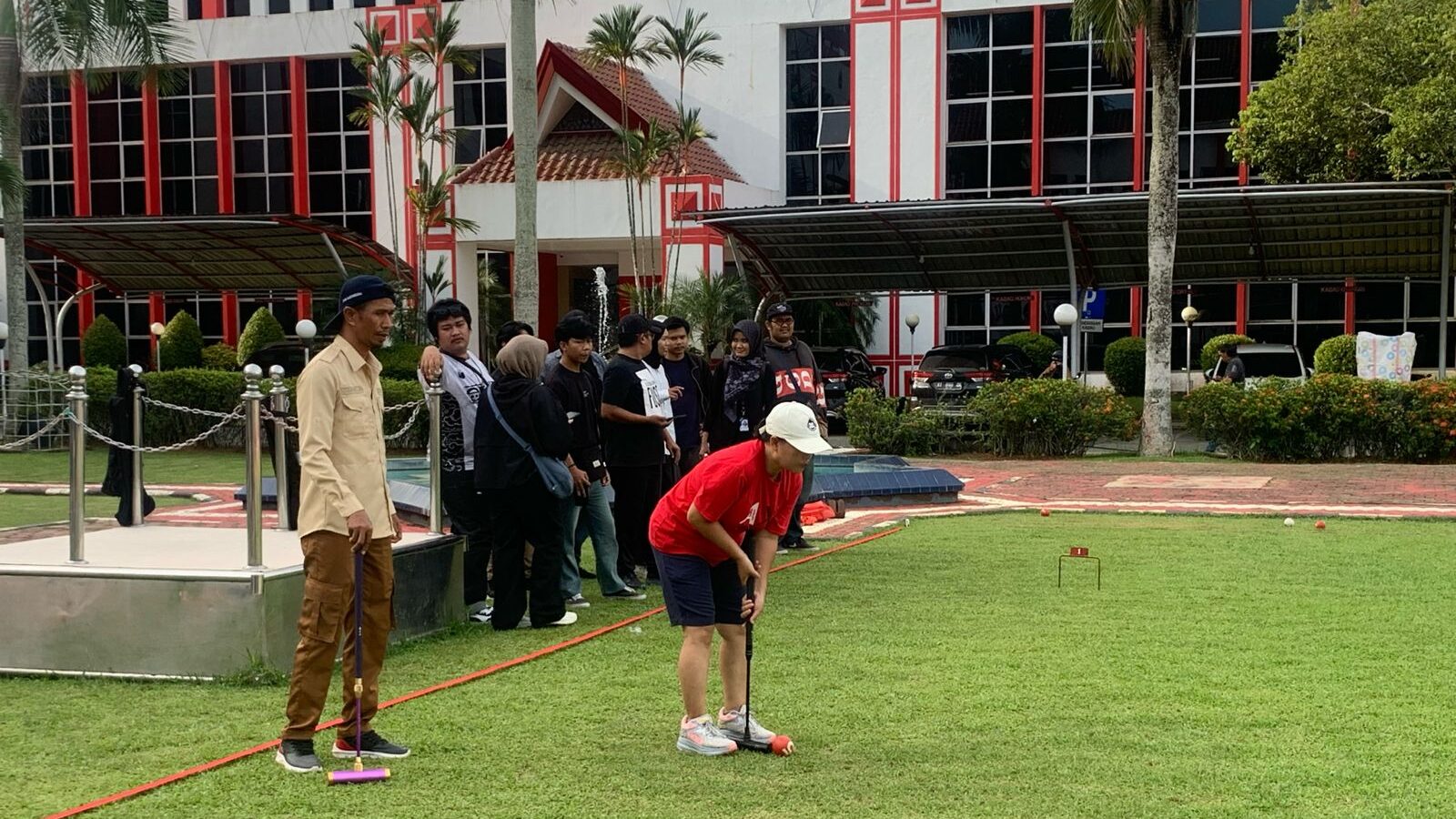 Foto: Olahraga Gateball dimainkan di depan Kantor Bupati Kukar. (fajar/komparasinews)
