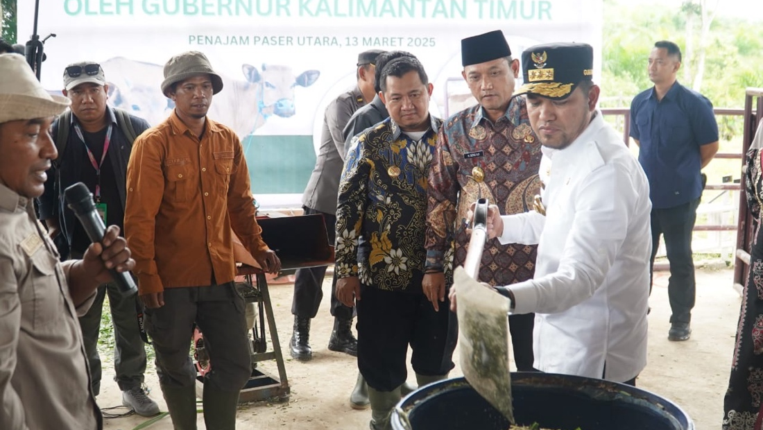 PENAJAM – Gubernur Kalimantan Timur, Rudy Mas’ud, meresmikan kandang dengan sistem intensive farming di UPTD Pembibitan Ternak dan Hijauan Pakan Ternak, Kecamatan Waru, Kabupaten Penajam Paser Utara (PPU), Kamis (13/3/2025).