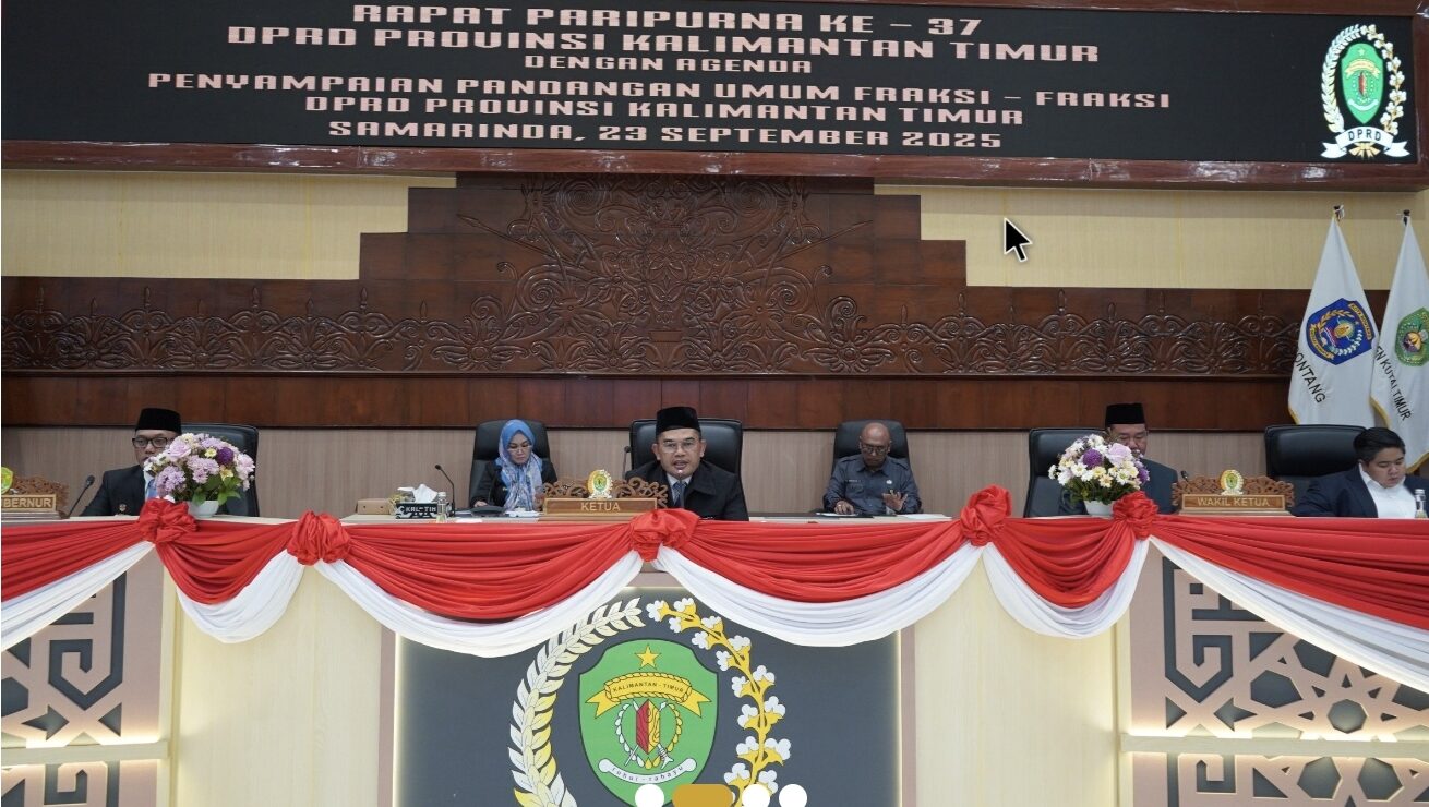 SAMARINDA — DPRD Provinsi Kalimantan Timur menggelar Rapat Paripurna ke-37 Tahun 2025 dengan agenda penyampaian pandangan umum fraksi-fraksi terhadap Nota Penjelasan Keuangan dan Rancangan Peraturan Daerah tentang Perubahan Anggaran Pendapatan dan Belanja Daerah (APBD) Tahun Anggaran 2025. Rapat digelar di Ruang Rapat Utama Gedung DPRD Kaltim, Selasa (23/9).