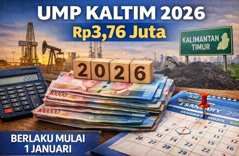 SAMARINDA — Pemerintah Provinsi Kalimantan Timur menetapkan Upah Minimum Provinsi (UMP) Tahun 2026 sebesar Rp 3.762.431,00. Ketentuan tersebut tercantum dalam Pengumuman Gubernur Kaltim Nomor 500.15.14.1/5097/DTKT.Srk-IV/2025 yang ditandatangani pada 24 Desember 2025.