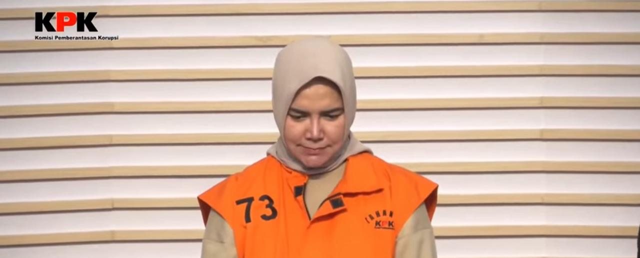 Foto : Ketua Kadin Kaltim, Dayang Donna Faroek mengenakan rompi tahanan KPK. (Tangkapan layar Youtube KPK)