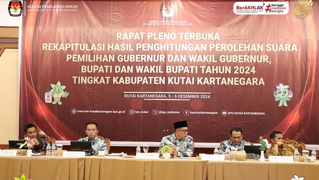 KUTAI KARTANEGARA – Komisi Pemilihan Umum (KPU) Kutai Kartanegara (Kukar) menggelar rapat pleno terbuka terkait Rekapitulasi Hasil Penghitungan Perolehan Suara Pemilihan Gubernur dan Wakil Gubernur, serta Bupati dan Wakil Bupati Tahun 2024.
