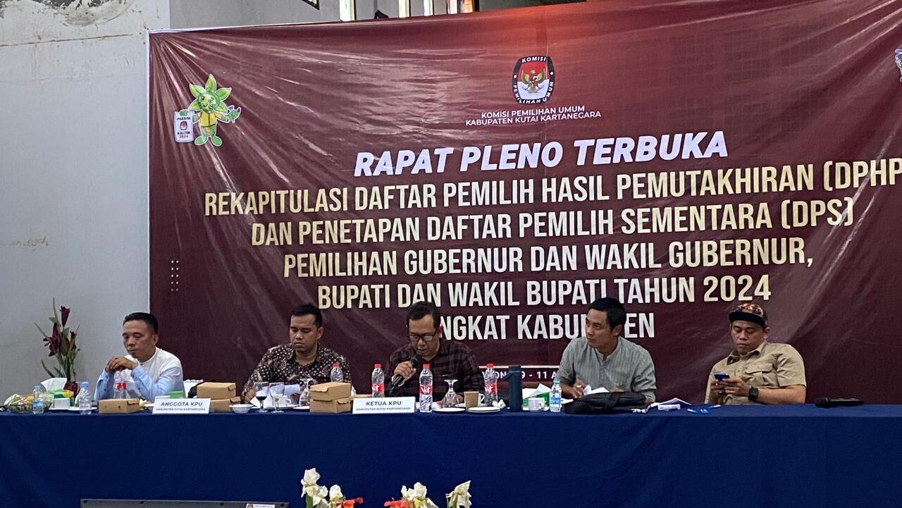 KUTAI KARTANEGARA – Komisi Pemilihan Umum (KPU) Kabupaten Kutai Kartanegara (Kukar) melaksanakan pleno rekapitulasi Daftar Pemilih Hasil Pemutakhiran (DPHP) dan penetapan Daftar Pemilih Sementara (DPS) Pemilihan Gubernur dan Wakil Gubernur, Bupati dan Wakil Bupati di Hotel Fatma Tenggarong, pada Sabtu (10/8/2024).