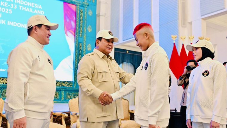 JAKARTA – Presiden RI Prabowo Subianto didampingi Menpora Erick Thohir dan Wamenpora Taufik Hidayat secara resmi melepas kontingen Indonesia ke ajang olahraga terbesar Asia Tenggara ke-33 SEA Games Tahun 2025 Thailand di Istana Merdeka, Jakarta, Jumat (5/12/2025) sore.
