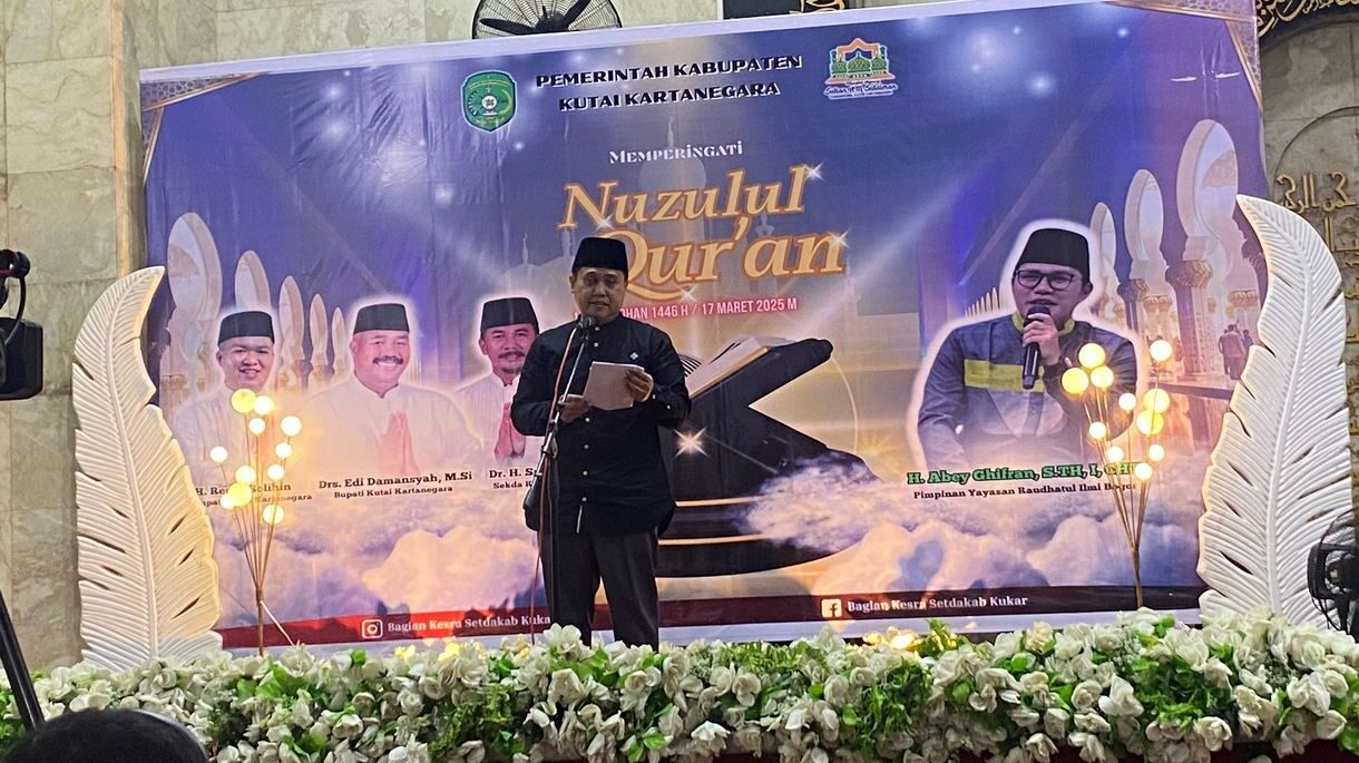 KUTAI KARTANEGARA – Pemerintah Kabupaten (Pemkab) Kutai Kartanegara (Kukar) menggelar peringatan malam Nuzulul Quran dalam rangkaian ibadah di bulan suci Ramadan 1446 Hijriah. Acara ini berlangsung khidmat di Masjid Agung Sultan Aji Muhammad Sulaiman (SAMS) Tenggarong, Senin (17/3/2025) malam.