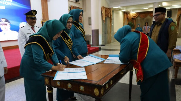 KUTAI KARTANEGARA – Ketua Tim Penggerak Pemberdayaan Kesejahteraan Keluarga (TP PKK) Kutai Kartanegara (Kukar) Maslianawati Edi Damansyah melantik Ketua TP PKK dan Bunda PAUD Kecamatan Loa Janan, Muara Muntai dan Kecamatan Tabang, Senin (16/10/2023) di Pendopo Odah Etam Tenggarong.