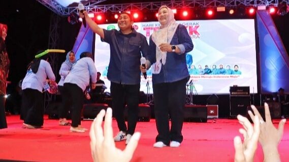 KUTAI KARTANEGARA – PKK Idol digelar dalam rangkaian Hari Kesatuan Gerak (HKG) ke-52 PKK tingkat Kabupaten Kutai Kartanegara (Kukar) 2024, di Lapangan Bola Desa Manunggal Jaya Kecamatan Tenggarong Seberang, Kamis (23/5/2024) malam. Sebanyak 20 pasang peserta yang terdiri dari 18 Camat dan Istri serta 2 pasang Sekretaris Camat (Sekcam) dan Istri unjuk kebolehan dalam bernyanyi duet.