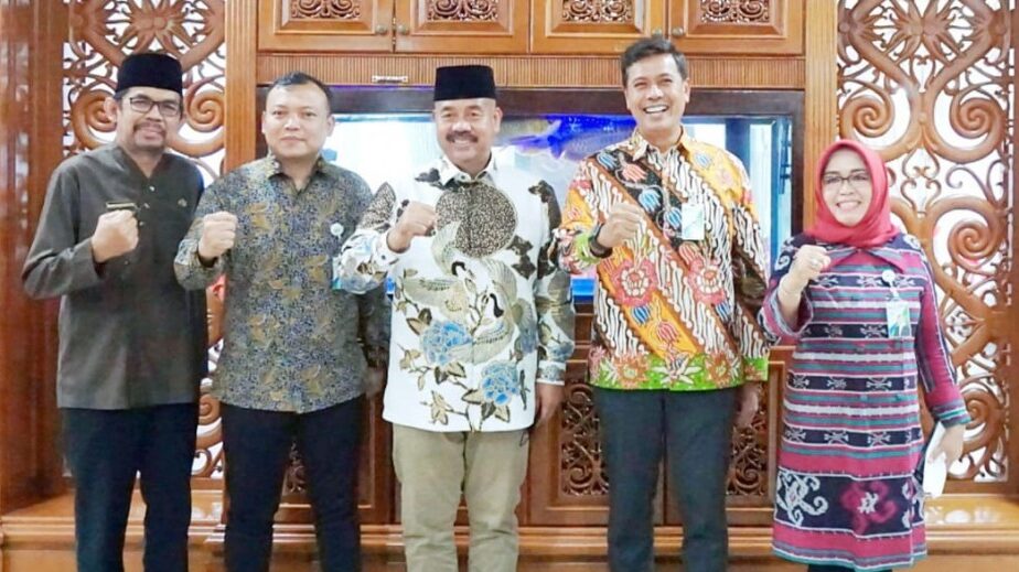 Bupati Kukar Edi Damansyah (berpeci) saat menerima kunjungan BPJS Ketenagakerjaan. (Foto: Prokom Kukar)
