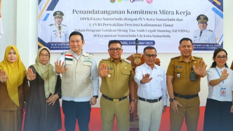 Kolaborasi tersebut ditandai dengan Penandatanganan Komitmen Mitra Kerja Program Gerakan Orang Tua Asuh Cegah Stunting (Genting) yang dilaksanakan di Ruang Serbaguna Kantor Kecamatan Samarinda Ulu, Jalan Ir H Juanda, Senin (13/10/2025).