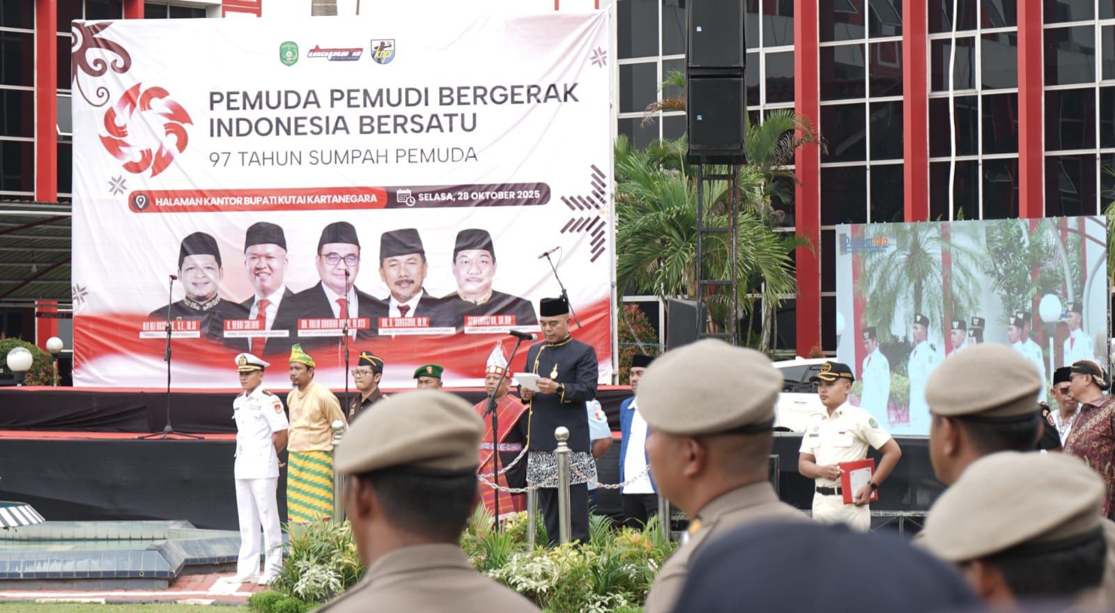 KUTAI KARTANEGARA – Pemerintah Kabupaten (Pemkab) Kutai Kartanegara (Kukar) menggelar upacara peringatan Hari Sumpah Pemuda ke-97 di Halaman Kantor Bupati Kukar, pada Selasa (28/10/2025).
