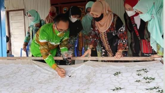 BERAU – Ketua bersama Wakil Ketua Dekranasda Kaltim, Norbaiti Isran Noor dan Erni Makmur Hadi Mulyadi, didampingi Ketua Dekranasda Kabupaten Berau Hj Sri Aslinda Gamalis mengunjungi 2 pengrajin Batik, pemenang Dekranasda Award 2021.