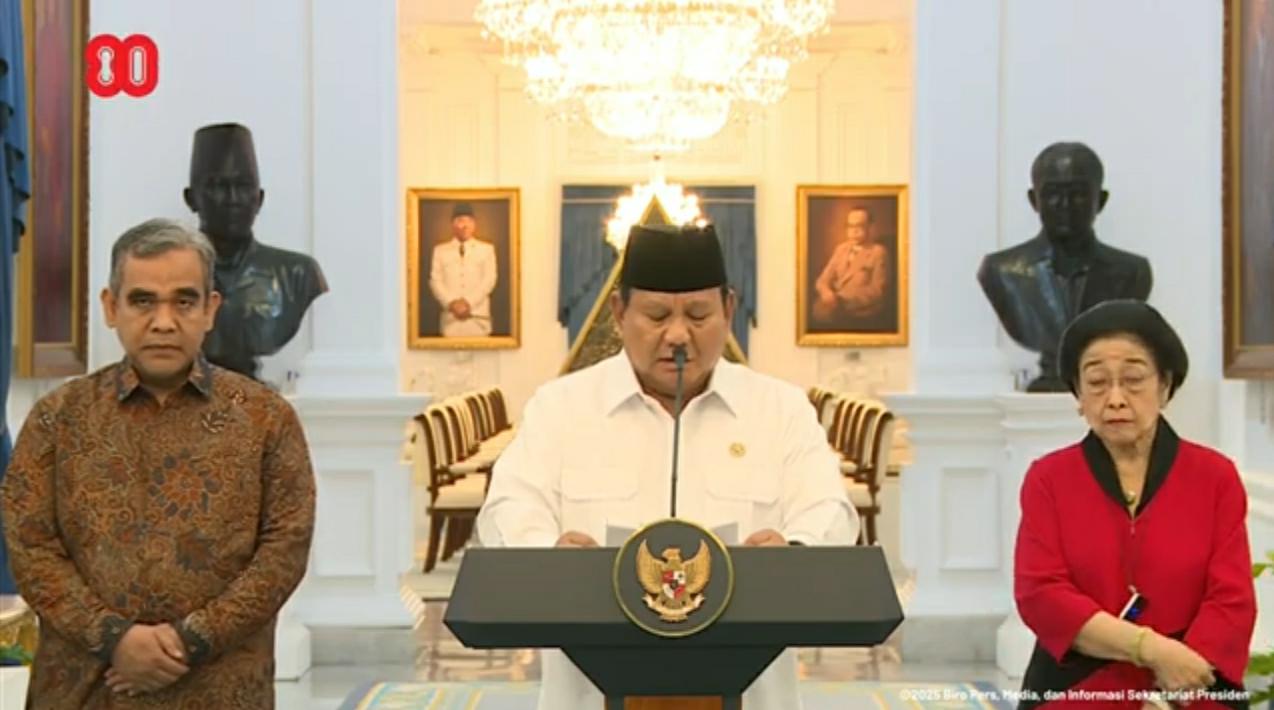 Pertemuan tersebut dihadiri oleh seluruh pimpinan partai politik yang memiliki kursi di DPR, termasuk Megawati Soekarnoputri (PDIP), Ahmad Muzani (Gerindra), Edhie Baskoro Yudhoyono (Demokrat), dan Bahlil Lahadalia (Golkar). Mereka mendampingi Presiden Prabowo dalam menyampaikan keterangan resmi terkait kondisi terkini. (*/Zu)