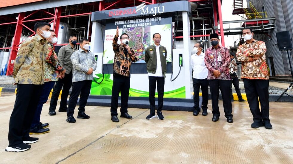 “Hilirisasi, industrialisasi harus dilakukan dan harus kita paksa untuk dilakukan,” ujar Presiden Jokowi saat meresmikan pabrik biodiesel milik PT Jhonlin Agro Raya, di Kabupaten Tanah Bumbu, Provinsi Kalimantan Selatan, Kamis (21/10/2021).