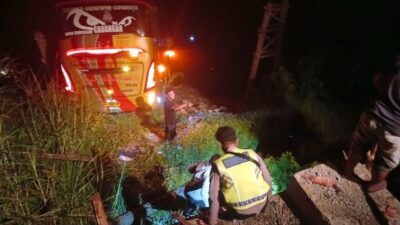 PASER — Sebuah bus antarkota bernomor polisi KT 7928 AQ terjun ke sungai di kawasan…
