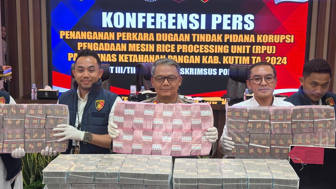BALIKPAPAN – Polda Kalimantan Timur kembali membongkar praktik korupsi yang merugikan negara. Dalam konferensi pers di Gedung Mahakam, Rabu (3/12/2025), aparat mengumumkan perkembangan penyidikan kasus dugaan korupsi pengadaan mesin rice processing unit (RPU) di Dinas Ketahanan Pangan Kabupaten Kutai Timur tahun anggaran 2024.